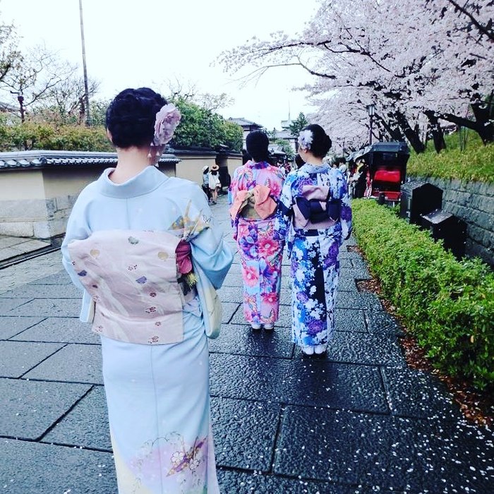 高台寺、清水寺、花见小路等等,都是可以穿着美美的和服拍美照的地方。因为衣服超多层,木屐走起来总是稍微麻烦一些,还是建议大家附近景点拍拍就好。二年坂、三年坂人巨多无比,沿路有不少卖纪念品的,大多是卖生八桥,年轮蛋糕和抹茶甜点的。