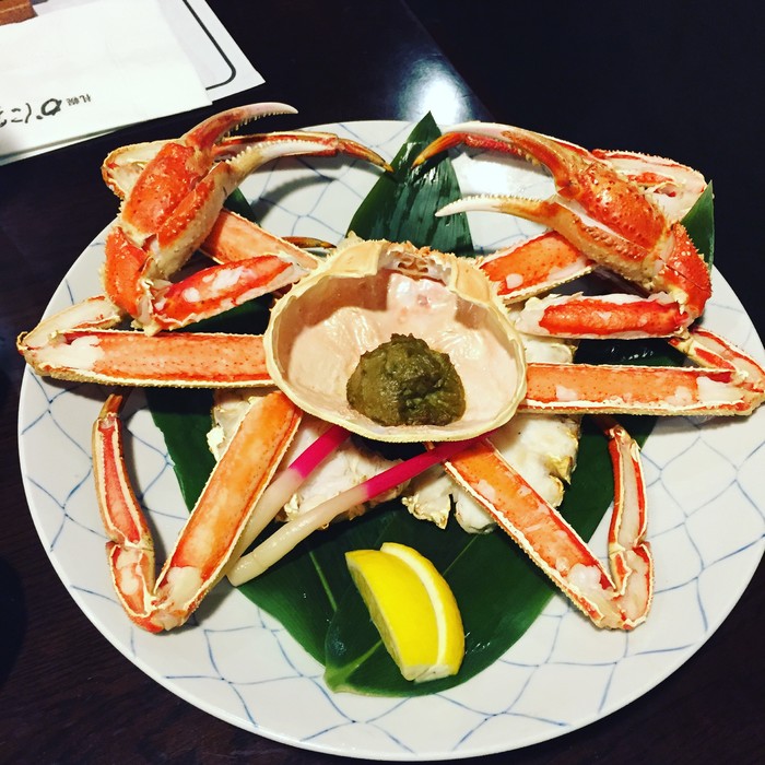 题外话,如果想要买明信片,可以在景点购买,但是邮票好像店里都不卖的,我问了好几家都说没有,最后还是去邮局买的。搜索邮便局就可以了找到附近的邮局了。晚饭吃了全蟹宴,木有吃蟹道乐,感觉螃蟹么应该味道也都差不多。在京都,吃了这家据说比蟹道乐还好吃,螃蟹全部札幌空运的店。可能期待太多,感觉好像也就那么回事吧,可能还是重口味适合我们,哈哈。