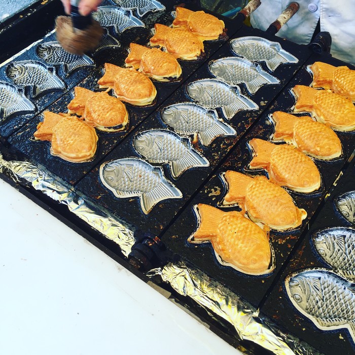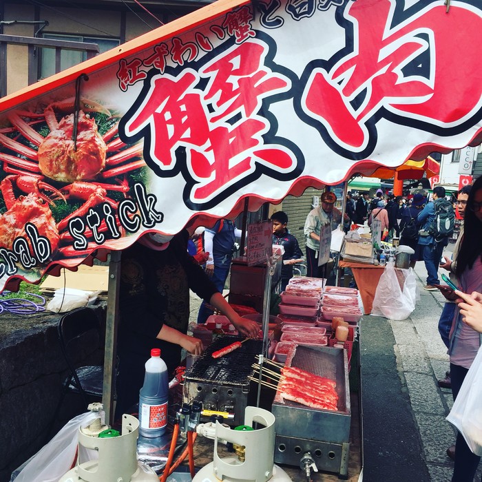 在进门前旁边有一条小吃街,章鱼小丸子,炸串,蟹肉棒,鲷鱼烧什么的各种有。我们直接没有吃午饭,吃了各种小吃打发了一下。