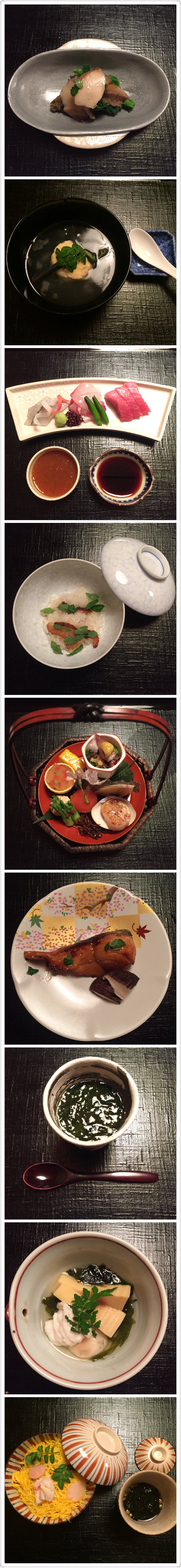 接下来就是当天的重头戏了,预约的米其林一星的怀石料理,每道都做的很精致,但是就是觉得还是我大中华的料理更博大精深啊,吃完就当做一种体验吧。毕竟京都超级多米其林,难得有这样的机会,还是要体验一下的。毕竟你也可以牛逼哄哄地和人家说你是吃过米其林怀石料理的人了。一般都需要提前预约,可以找万能的淘宝,一般淡季提前一个月差不多,像樱花季,我们提前一个月米其林三星和二星都是完全没有了,只能定了个一星的。