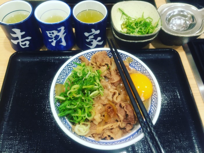 晚饭吃了吉野家,生鸡蛋我不要太爱啊。
