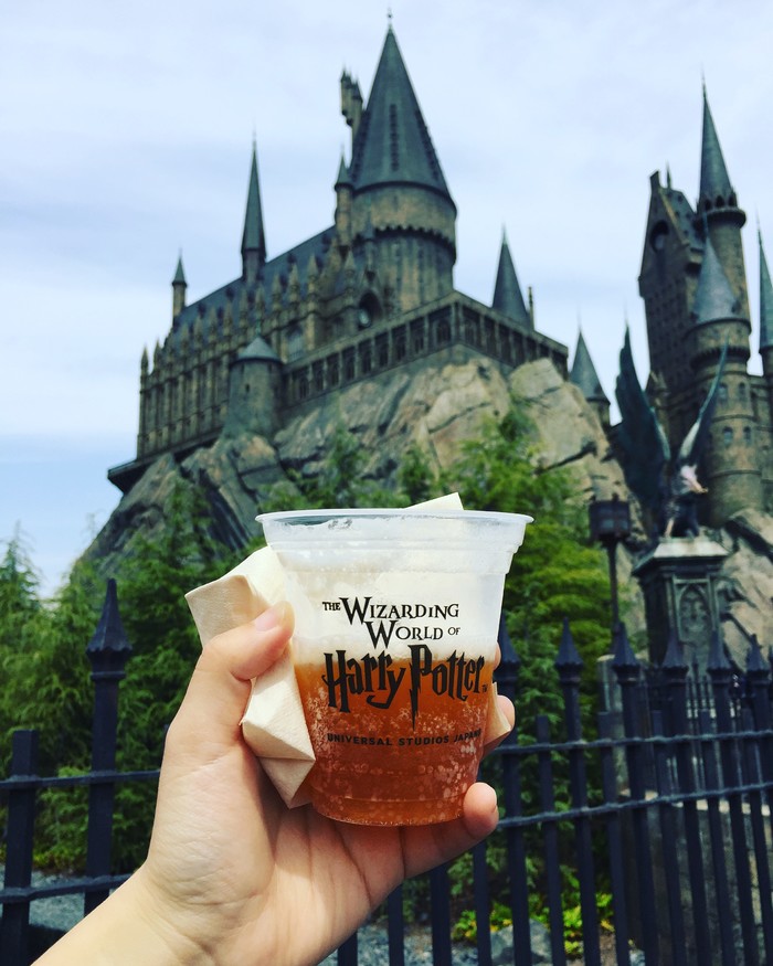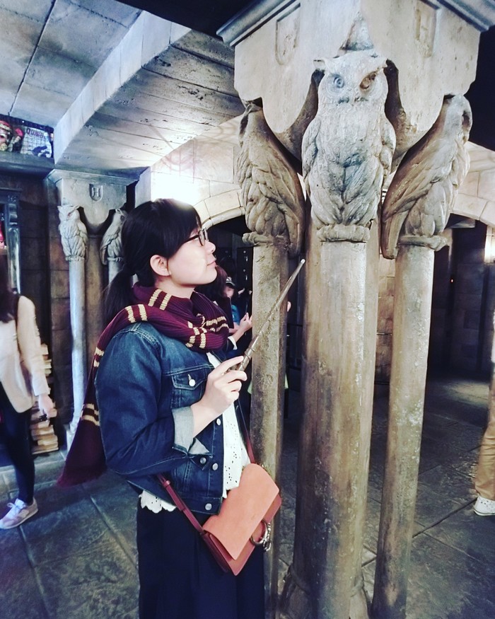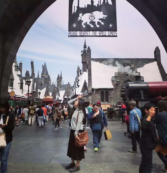 虽然只玩了5分钟,但是真的很好玩,瞬间想起那时候看的各种情节,就是人物都是说的日语,还蛮奇怪的啦,哈哈。和朋友两个人傻啦吧唧地还蛮了纪念围巾,金色飞贼什么的,我买了之后根本舍不得送人,感觉每个都要自己私藏了。黄油啤酒味道很好的,没有酒精的,买大杯的话,杯子还能带回家珍藏。有一个新出的过山车,看起来超级恐怖,内心挣扎再三都没敢去排队,被朋友们各种说会后悔啊。我是觉得不后悔啦,我去找各种公仔玩去了,好多小朋友都在等合照,公仔根本不理我们,我只能一把抓住他,直接拉过来拍了,超开心哒。