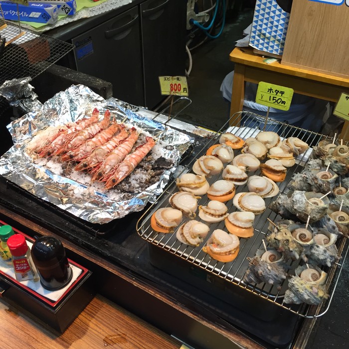 在日本的最后一个晚上,终于吃上了居酒屋。去的路上路过黑门市场,各种生鲜,只是人家要关门,哎。