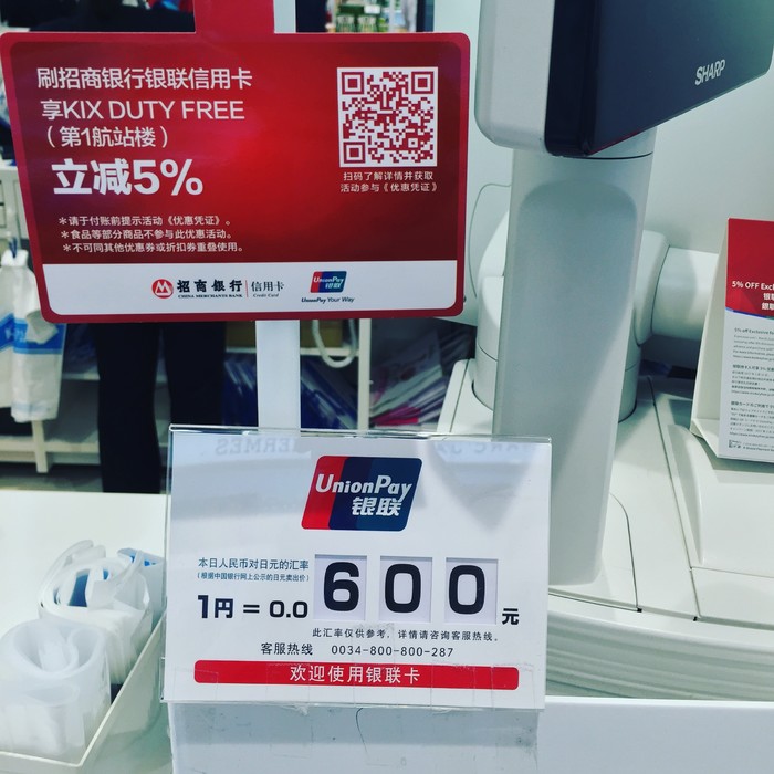 来到机场也免不了买买买了,给大家几点建议,可以办张招商银行信用卡,本来平时活动也蛮多的,在关西大阪机场还有直接5%的优惠,不过仅限银联。不过,你可以办一张银联的,再办一张booking联名的visa卡,不过在日本最优惠的应该是JCB了,不过国内基本用不到,所以我也实在没高兴办。