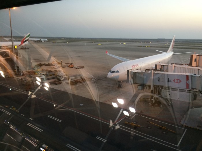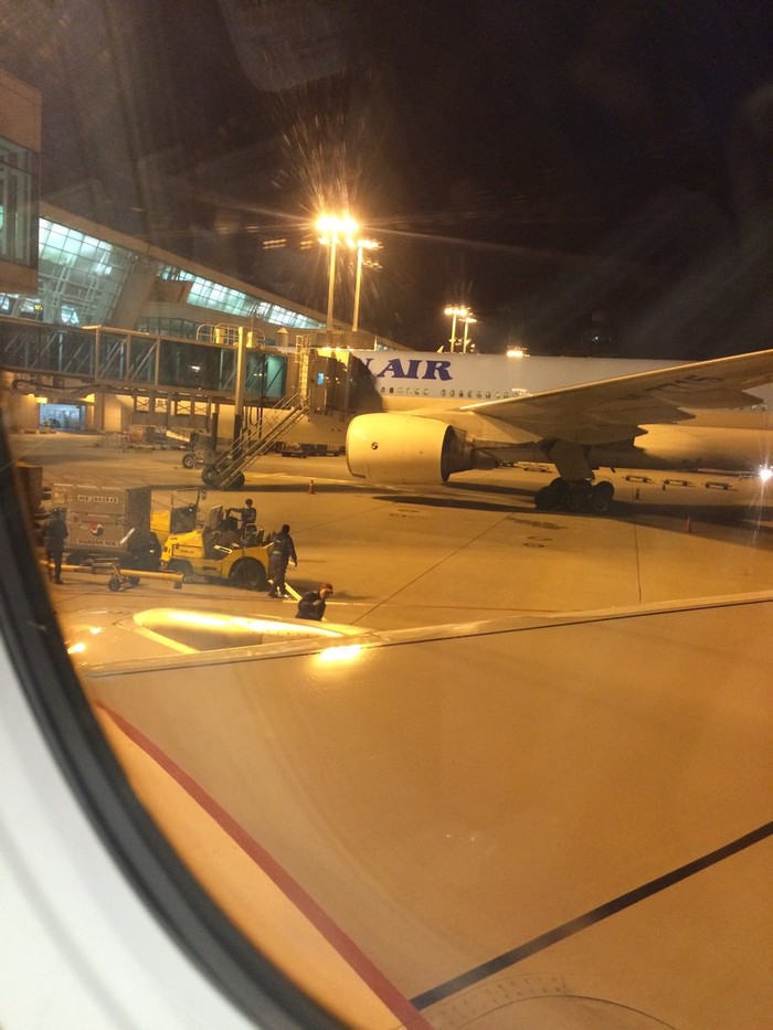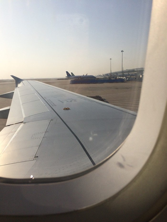 其实几乎就没有睡觉打盹,早晨五点多就去托运了行李到里面等免税店开门,帮同事带了两条香烟和化妆品后到候机室里等候登机,先坐的短驳车再有序的登机,上了飞机