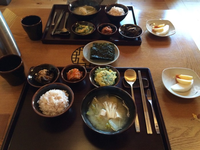 一早起床,民宿包早餐 给我们准备了韩国的传统早餐~