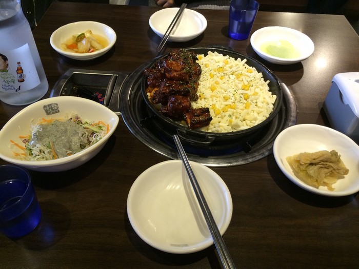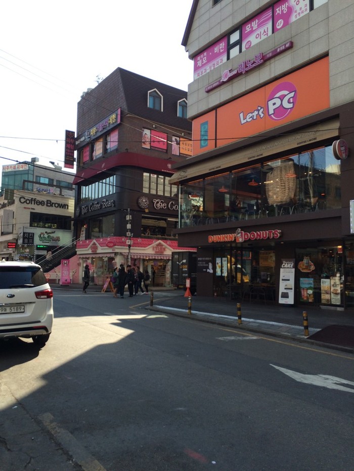 接着去了弘大,先去吃午餐,点了两人份的芝士排骨,一点点小辣但是很香~ 吃完饭慢慢地逛逛弘大~