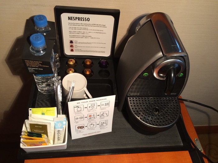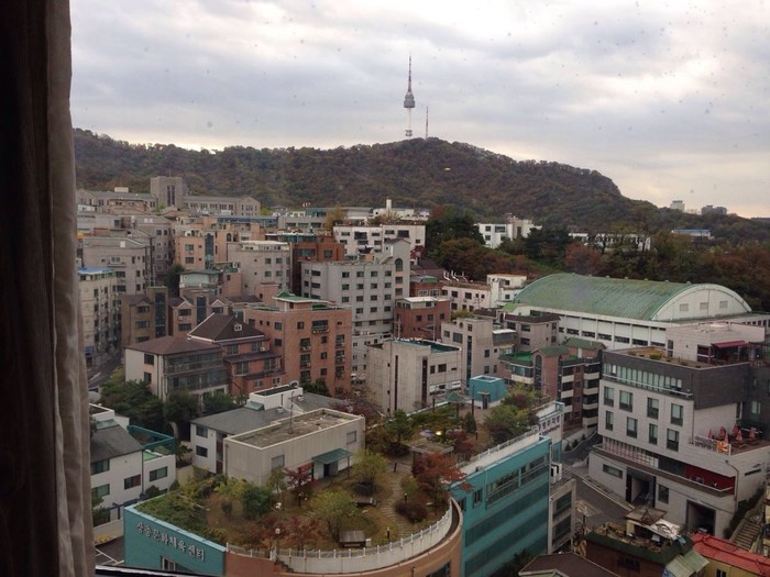 韩国酒店大多3点以后才能入住,看了一下时间差不多了,就急匆匆的赶回酒店办理入住,从房间里看出去还能看到首尔塔,房间里还有高级的胶囊咖啡机,每天限2个咖啡免费提供~