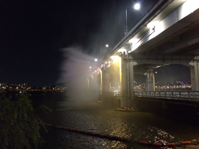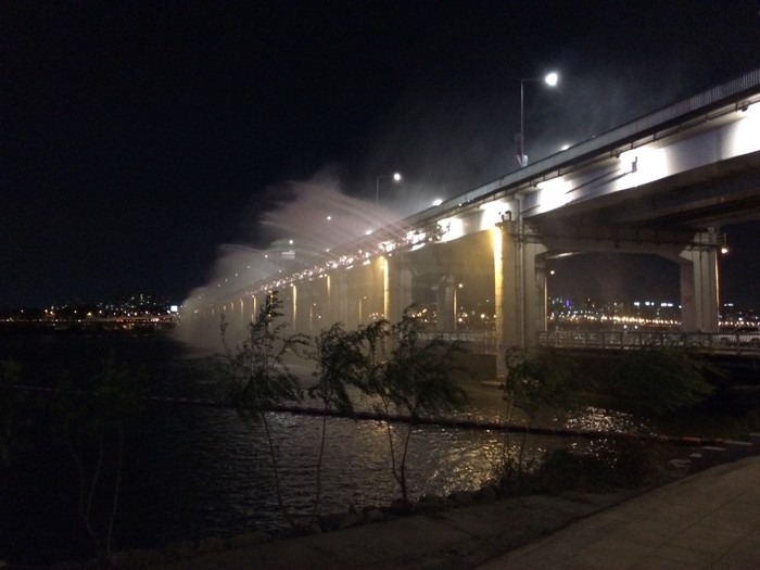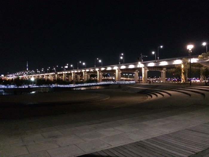 然后特意坐地铁去买了twotwo炸鸡,打包了带走,去汉江看昨天没去的彩虹喷泉去了