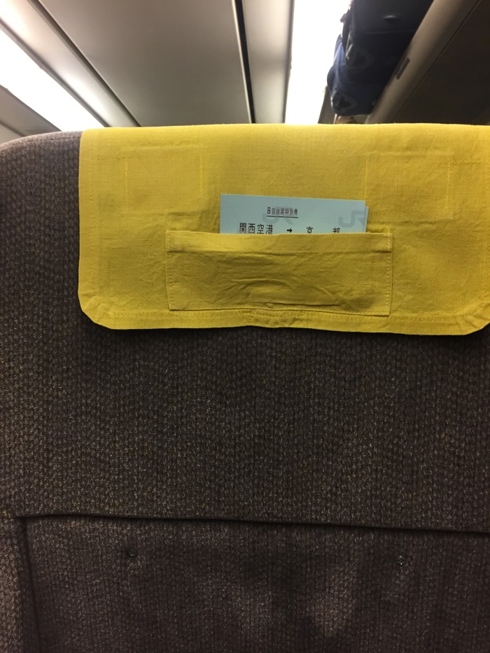 列车座位有可以插票的地方,因为日本的列车会有检票,票插在那就可以自己忙自己的了(打瞌睡~),验票员会过来自行拿取验票。