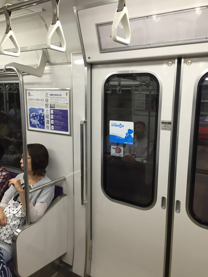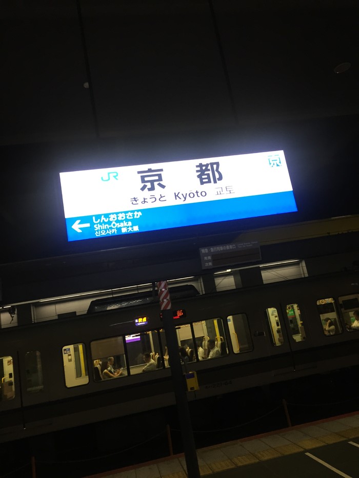 坐的是18:46的关空特急(Haruka)到达京都站20:04,天已经完全黑了,列车行进中的车窗外基本也是一片漆黑,空空荡荡的。
