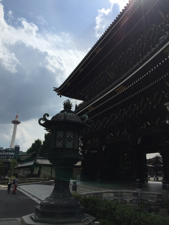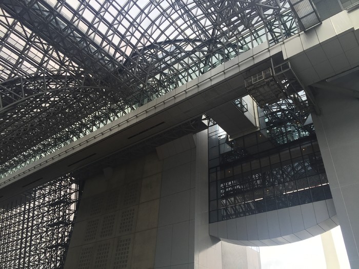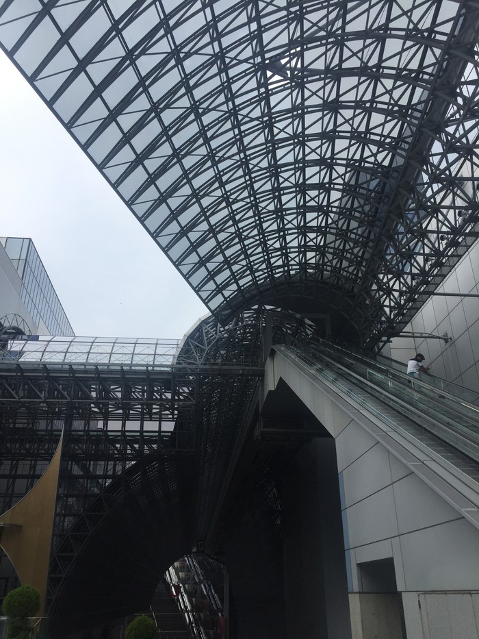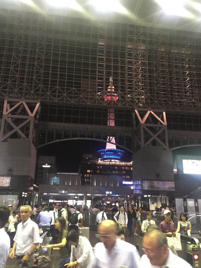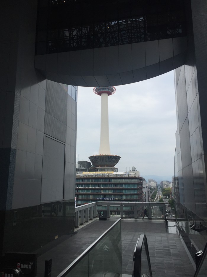 京都站本身就是新京都的中心,这边是京都的交通枢纽(列车,地铁,公交车站),也是京都的购物中心,京都塔就位于京都站旁边,在京都站的出站口可以看见京都塔~