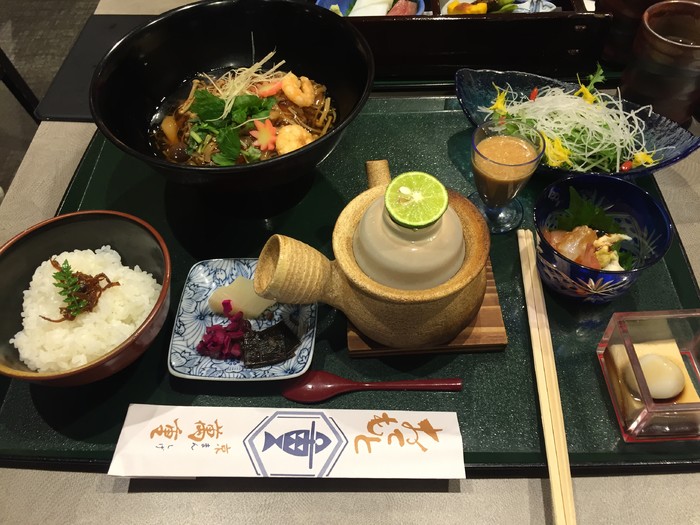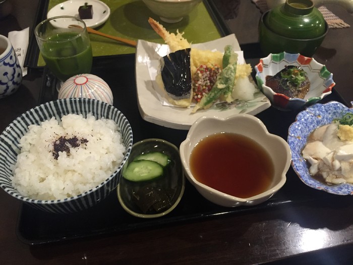 京都站楼上有大名鼎鼎的拉面小路(上面那个出站口出去上楼),京都站出站楼下地铁口旁边有很多好吃的店(可以不用出站直接往地铁口走),我们选了一家看上去比较有特色的料理,日本的饭店基本都挺好吃的,甜甜的,比较对口味。