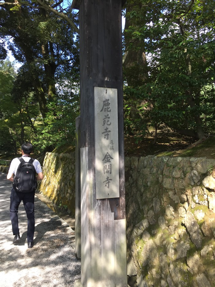 步行进金阁寺,金阁寺又名鹿苑寺,联合国世界文化遗产,寺院里面还挺大的,走一圈也要半个多小时,在金阁对面拍照的地方人会很挤。另外注意金阁寺的旅客总体很多,游览道路只有一条,且上山下山道路狭窄,建议一清早就去或者快关门时去,避开人流高峰。