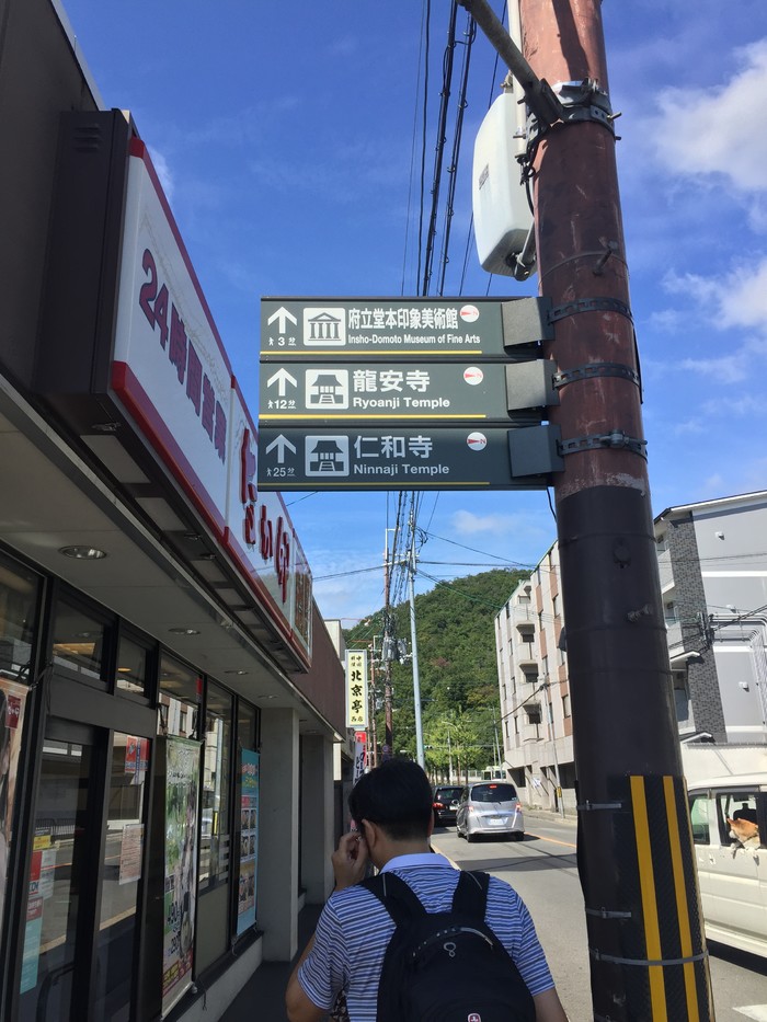 金阁寺,龙安寺和仁和寺是在一起的,可以乘巴士,都在一条线上,我们是直接走的,因为不想等公交车而且地图看上去还蛮近的。这边建议请千万不要走!!!!就算是上面写着走过去就十几分钟也不要走!!这段路很难走,全是上山路,一路上都看不见走的人,而且也肯定不止走十几分钟,三十分钟差不多,加上太阳一晒,那股酸爽简直了。