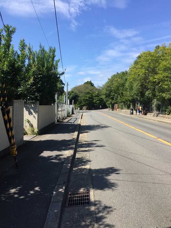 京都的巴士到站后左侧会有下沉下去,远处看就是这个样子。