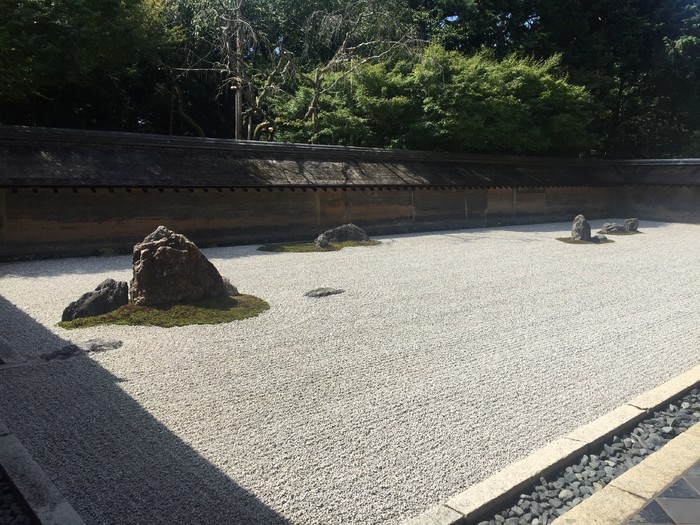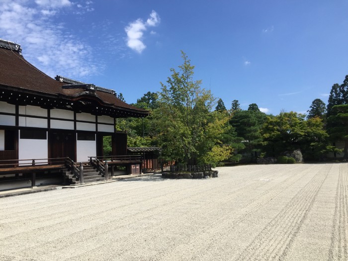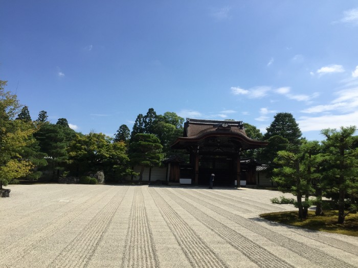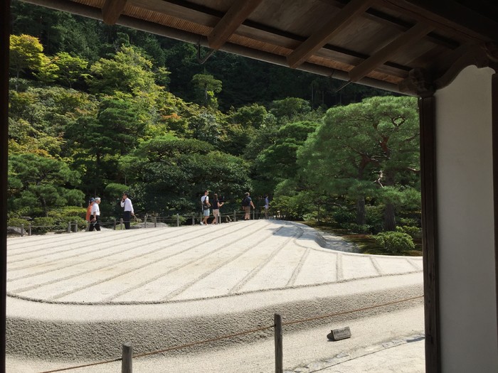 仁和寺里也有这种类似银沙滩的布景,太阳下会看见有工作人员拿着木头刷子在那边铲沙。