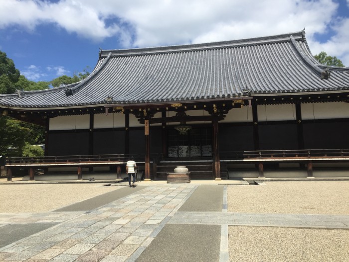 仁和寺的大门要比金阁寺和龙安寺的大得多。