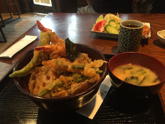 仁和寺出门小路上有家盖饭店,手机上看见大众点评评价高就去的,店不大很容易看漏,里面上菜也不快就两三个工作人员,但一直都是坐满的状态。盖饭很好吃!很入味,里面渗的酱汁很浓厚,用料也都炸的外酥里嫩。