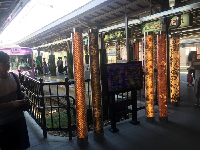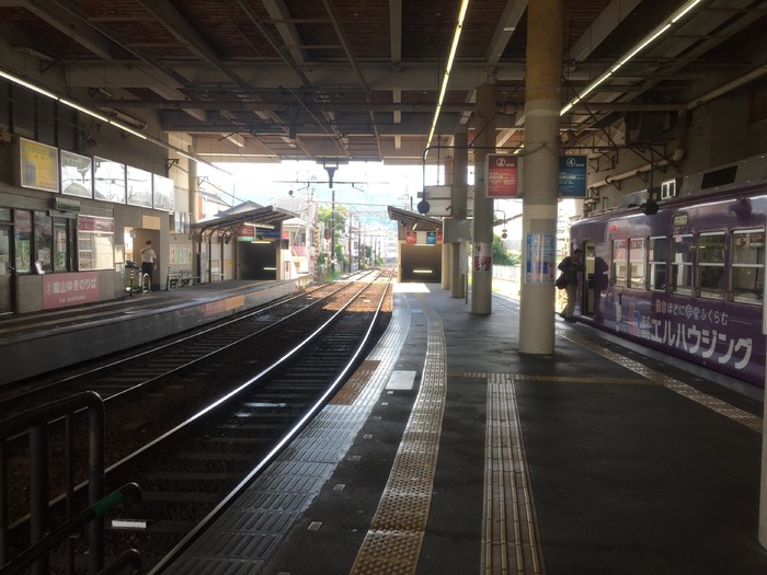 吃完午饭我们准备奔赴下午的岚山~顺着小路下来坐铁路到底转岚山。仁和寺站特别小,就跟公交车站台一样树在铁路的旁边,直接上去好了,买票的话跟公交车上一样前门出来投币机里买,想去岚山的话不用买票,直到转车到岚山的时候一起付钱。
