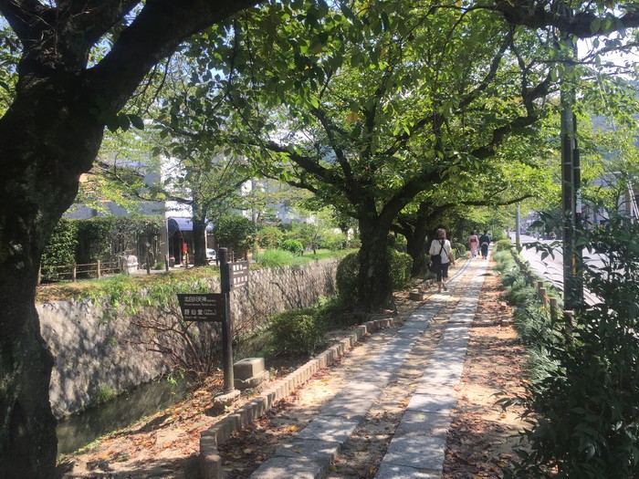逛晴明神社时间用的不多,拿完御朱印出来公交去银阁寺,银阁寺站下车往里走一段上山路,沿着河边是哲学之道。