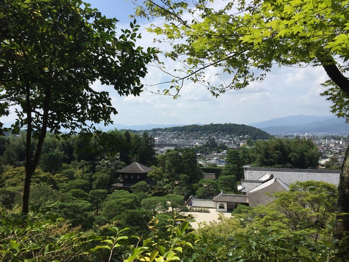 银阁寺沿着小路上山,在顶出可以看见围在山中间的京都城。