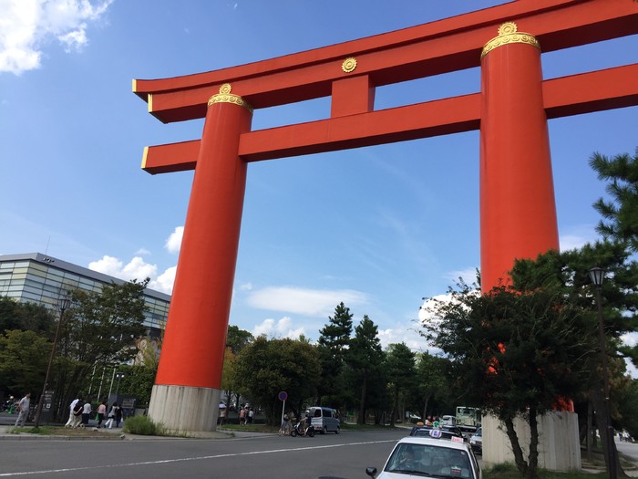 坐公交到平安神宫,平安神宫应该也算是现代建筑了,门口会有特别巨大的鸟居,旁边就是京都美术馆,感觉平安神宫也有点走不动了,就随便逛下美术馆好了。