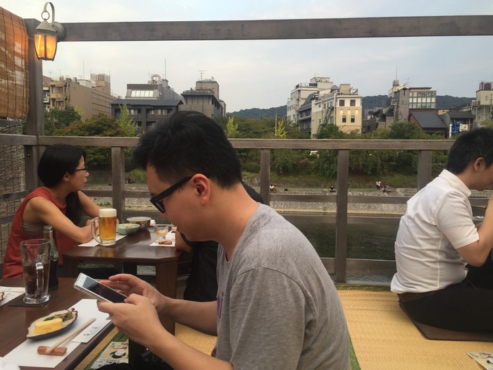 随意挑了家吃京料理的纳凉席,感受鸭川边上的夜晚