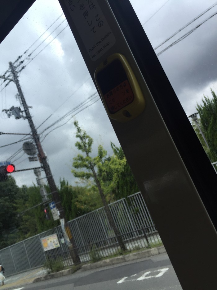 京都巴士白天的话一般每站都会停车,到晚上人少的时候,在要停站之前按下车上的红色按钮(到处都是上车你就能看到了),车就会在下一站停车。不用太担心上巴士会尴尬啥的,真的很好用,记得以前看过一篇攻略,上面说过一句话觉得很有道理,他说想要玩转一个国家,首先就要玩转他的巴士。很有道理的说!