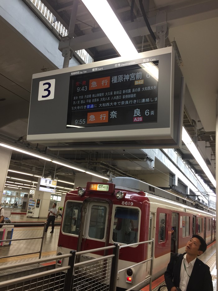 近铁全称是近幾铁道,有急行和特急,去窗口问哪个能更快到达奈良就选择哪个。