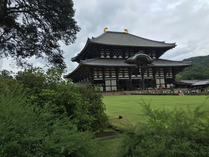 东大寺在奈良公园内,是世界最大的全木质结构建筑,著名的奈良大佛就在这里。