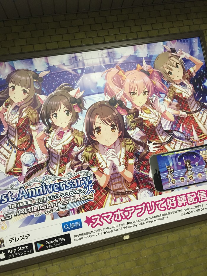 天王寺站台上看见偶像大师二周年活动的广告牌!