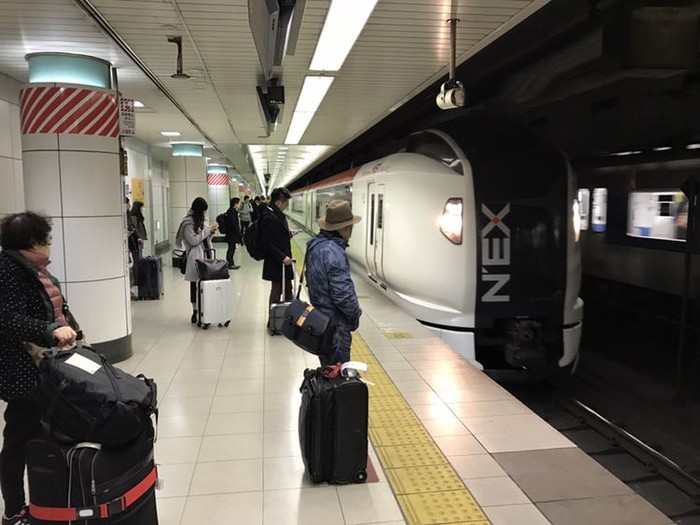 办理完入境并取到行李,差不多花了30min,我们在Terminal3要走差不多六百多米到Terminal2,因为JR车站在这里。到负一楼的Ticket Office换好了JR Pass,告诉desk clerk我们的目的地大井町后他帮我们换好了成田特快Narita Express(NEX)到品川的车票。