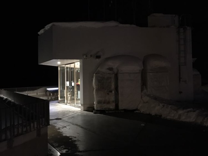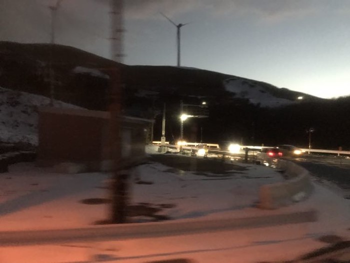而且我们还发现,乘缆车上来的人都戴了防护帽,就我跟旅伴两个傻乎乎地戴了顶可以露头发的那种给耳朵保暖的帽子(我的锅,当时看迪卡侬上这个蛮酷就赶紧建议买了,不过这个帽子虽然今天用起来很不安全,但后面几天还是挺管用的要不我们的耳朵都要冻掉了)。