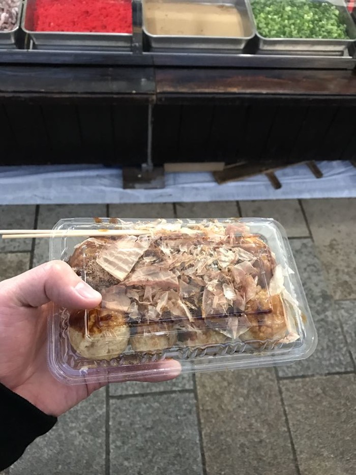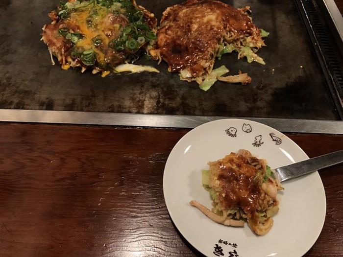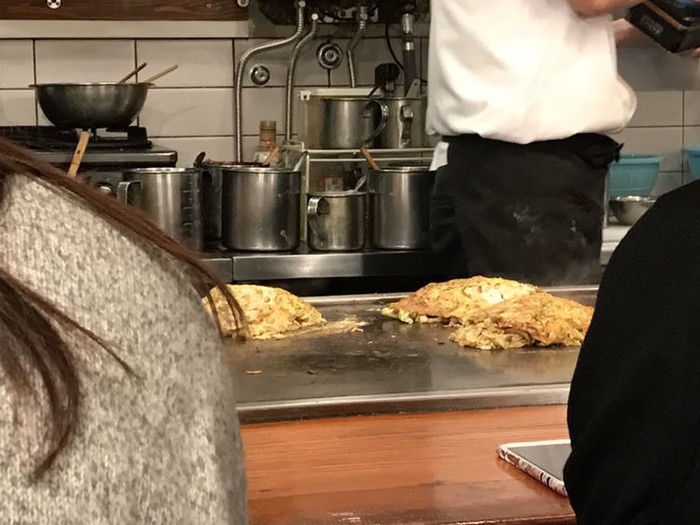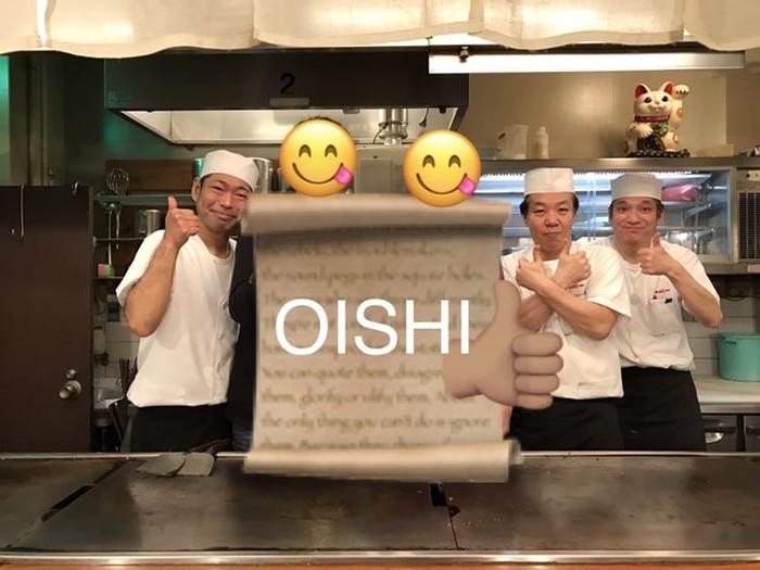 作为今日真正的最后两名食客,幸运地与老板们合影,拍照的是一位在大阪读书的四川妹子,人很好,一直在帮我们翻译。老板们都很萌的,而且看得出来是真心喜欢所从事的行业,在制作大阪烧时脸上洋溢着幸福的笑容。