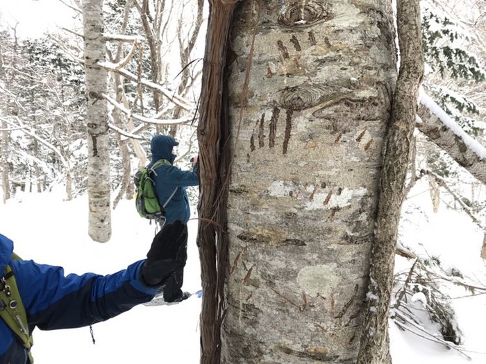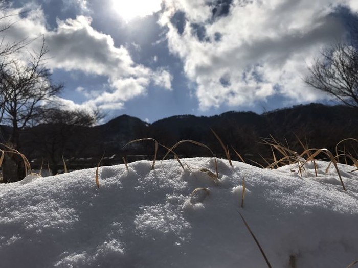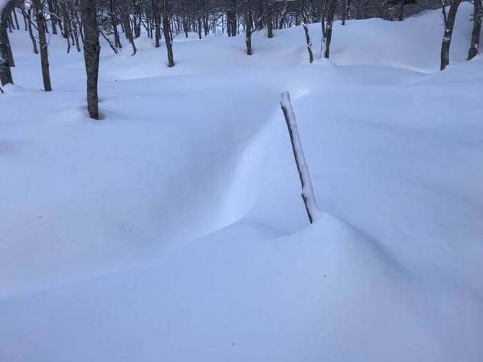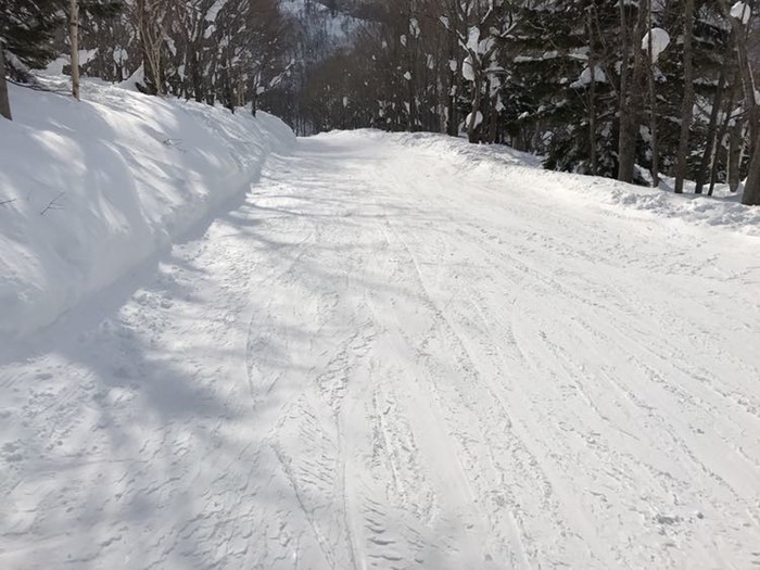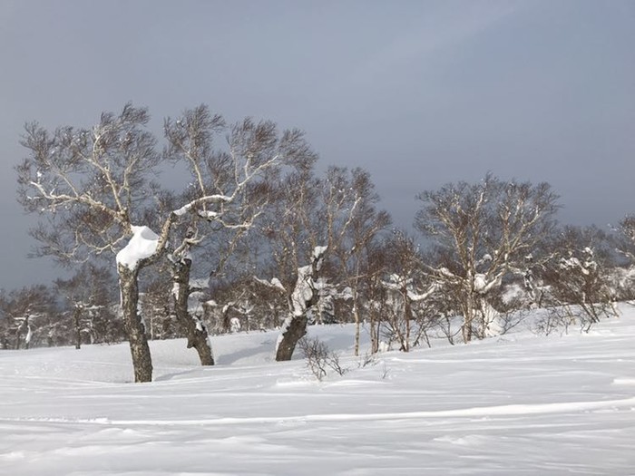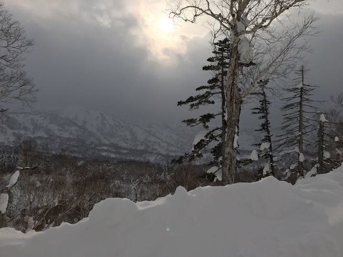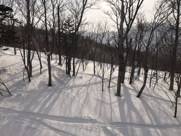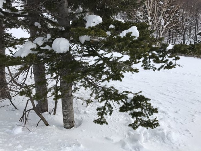 全是粉雪,摔上去很爽。对了,Yoshikawa桑还告诉我们地上的雪不能吃,因为可能会有狐狸在上面小解,那样雪就有毒了;树上的雪可以食用,吃了一口,除了没有甜味外真的是天然的雪冰(其实我兜里还有前几天没用的咖啡糖,never mind)。