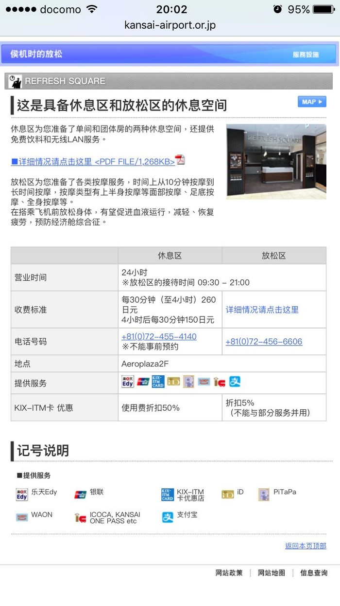 (宿关西空港休息室http://www.kansai-airport.or.jp/cn/service/relax/index.html#_01)