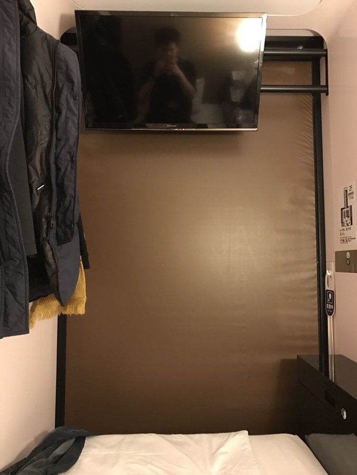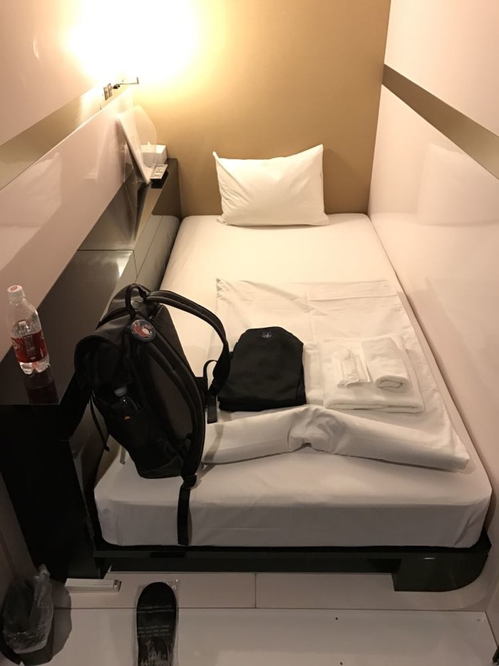 (宿一等舱筑地胶囊旅馆,距筑地地铁站1min步行距离)