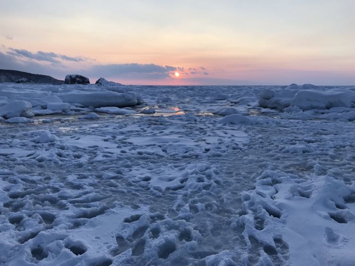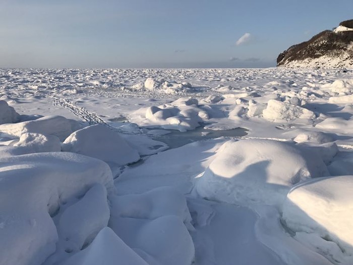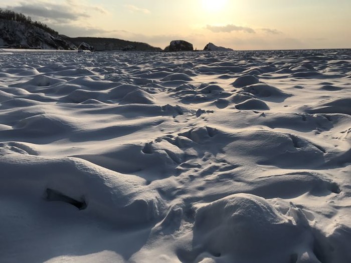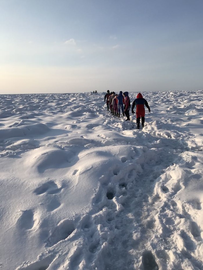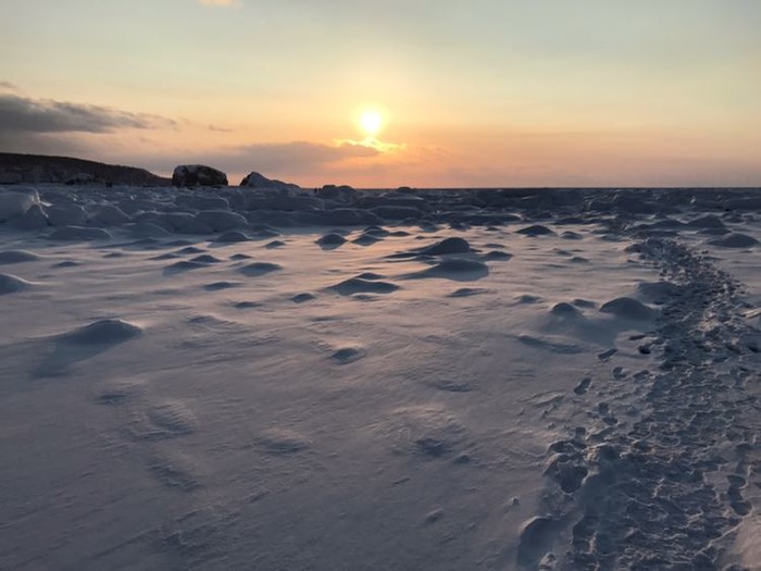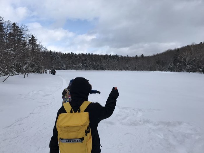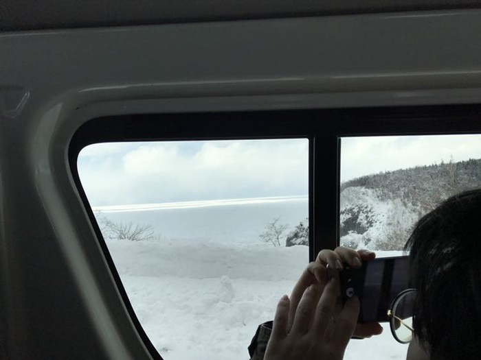 今日行程是知床协会的五湖和流冰漫步了,网上提前一个月预定,11000日元(只收现金,上午的行程完毕后交给了导游)。知床国立公园冬季是不对外开放的,要想进去玩耍就必须通过这个途径了(一是里面路况很危险,搞不好就掉进水里冻成冰棍,二是公园里有熊出没,话说协会官网上写了如果近期有熊的动静那么该项活动取消,今天过得这么顺利还得感谢知床的各位熊们冬天睡了个好觉)。