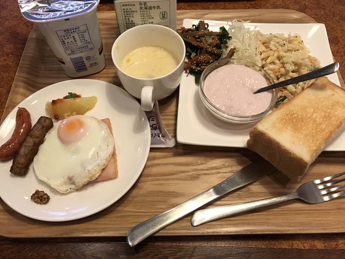 酒店的温泉在打扫,下午两点开放,我们先去吃点东西。