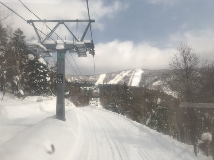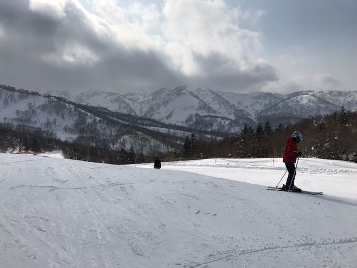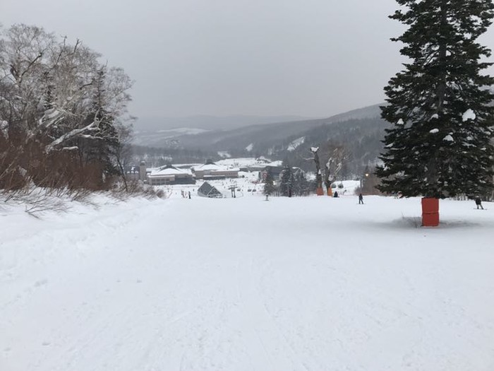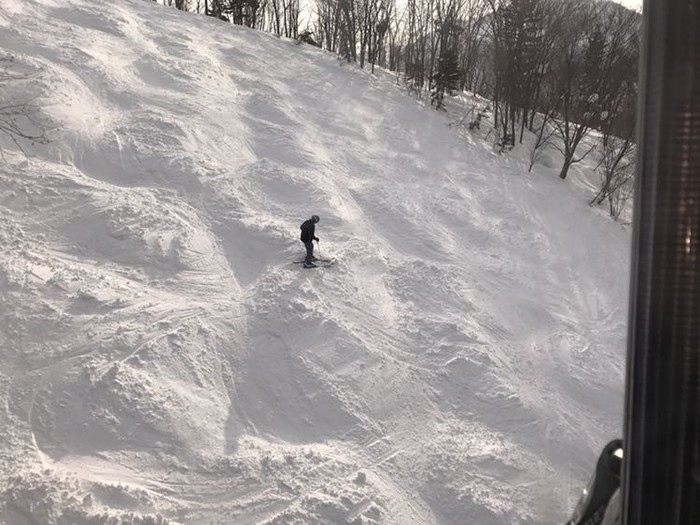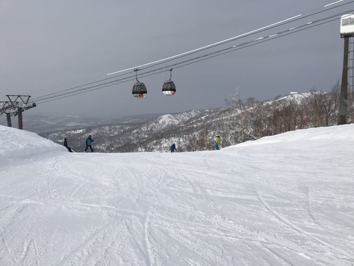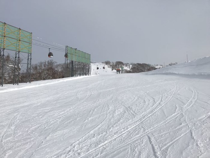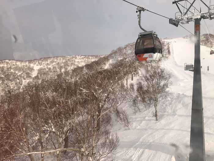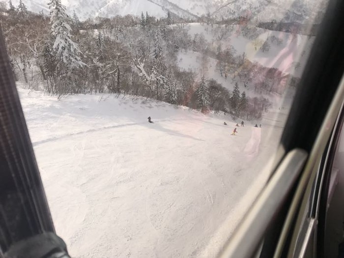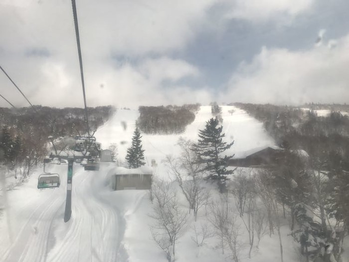 总而言之就是个beginner了只不过还是滑过一次的,desk clerk(一个欧美妹子,因为感觉跟欧美人说英语比跟日本人说还是要方便快捷)就给我们订了图左边的初学者滑道和右边的Gondola缆车去山顶拍照,她说我们搭了Gondola之后要再坐缆车下来就跟上面的工作人员说下我们只是看看风景照个相就下去就可以(同时做了一个拿相机咔嚓的动作)。结果我们最后上了最高峰,还是从高级滑道一路连滑带摔并走的下了山,现在想起来真是刺激,居然活着回来了。
