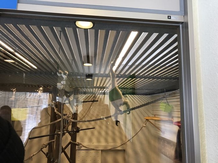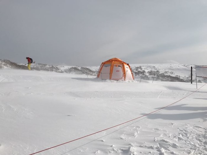 看到旁边有身着印有黑色十字标志红色战斗服的工作人员赶忙过去求救,结果由于交流问题在岔路口他给我们指了条破脸之路。这条下山的是"S"形的盘山式滑道,结果那风夹着冰雹吹的,眼镜全糊住,脸上被雪打得跟针扎一般,所幸滑了不久,天气就变好啦。