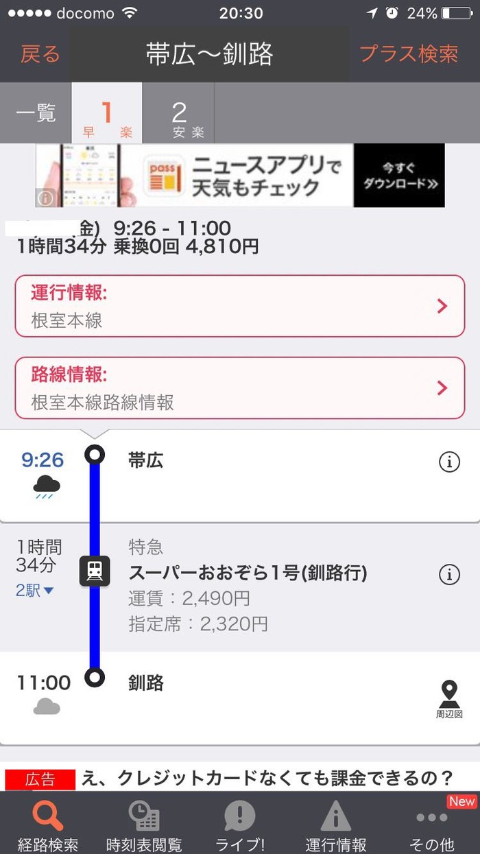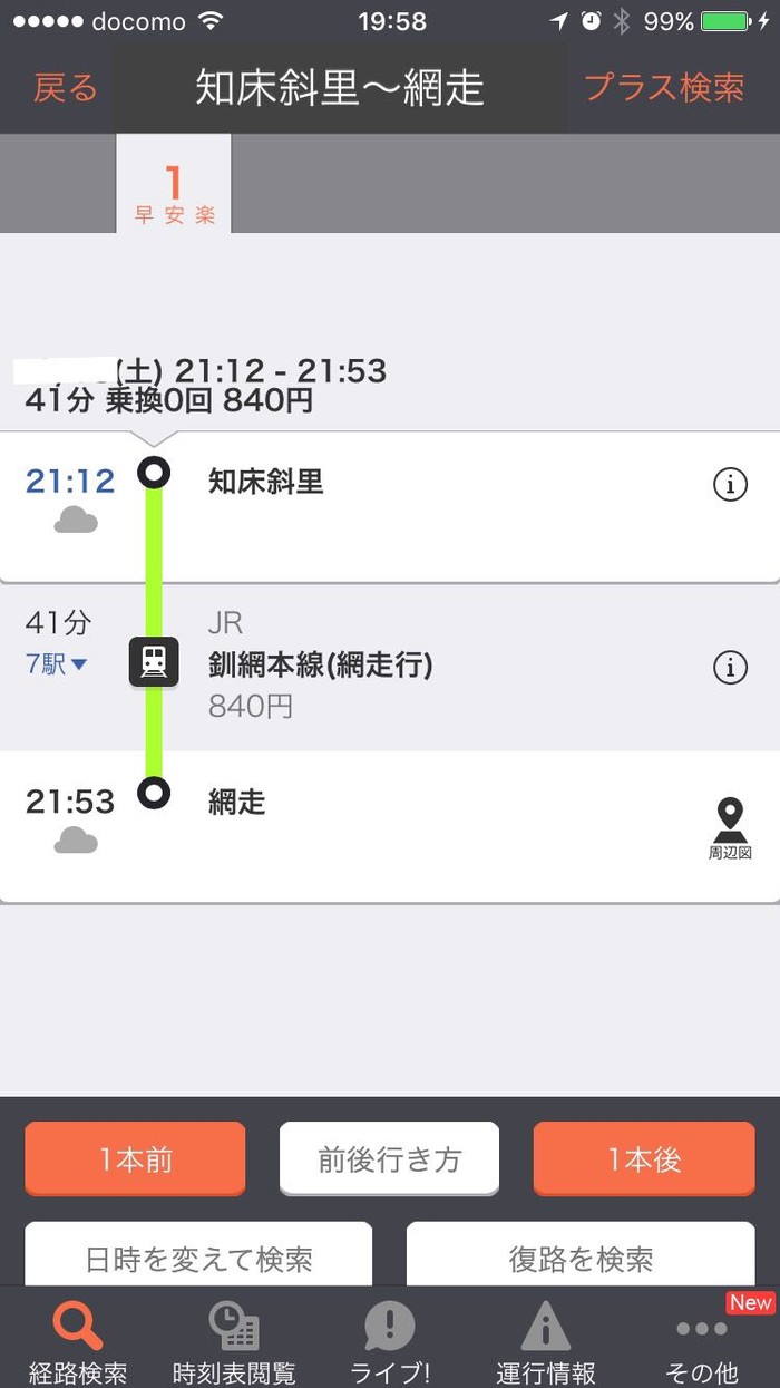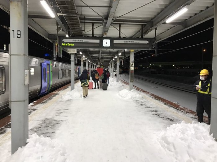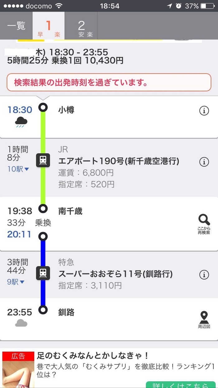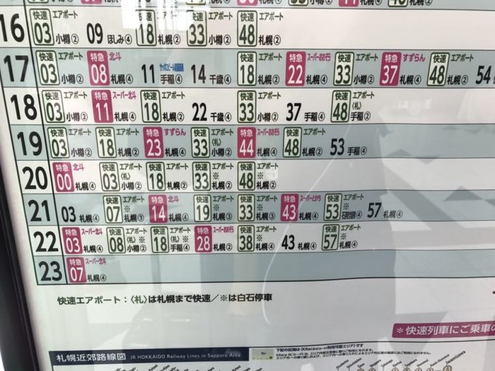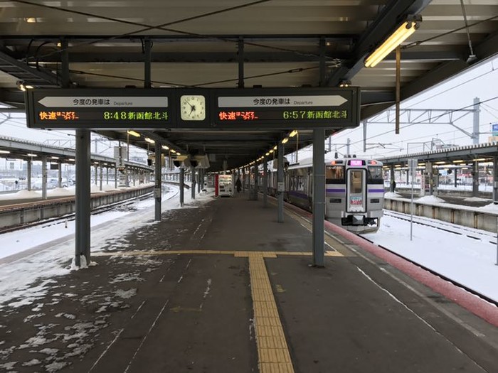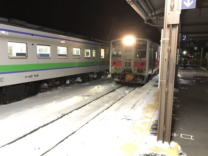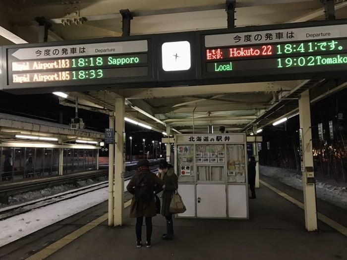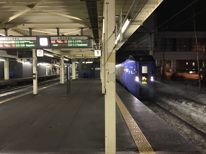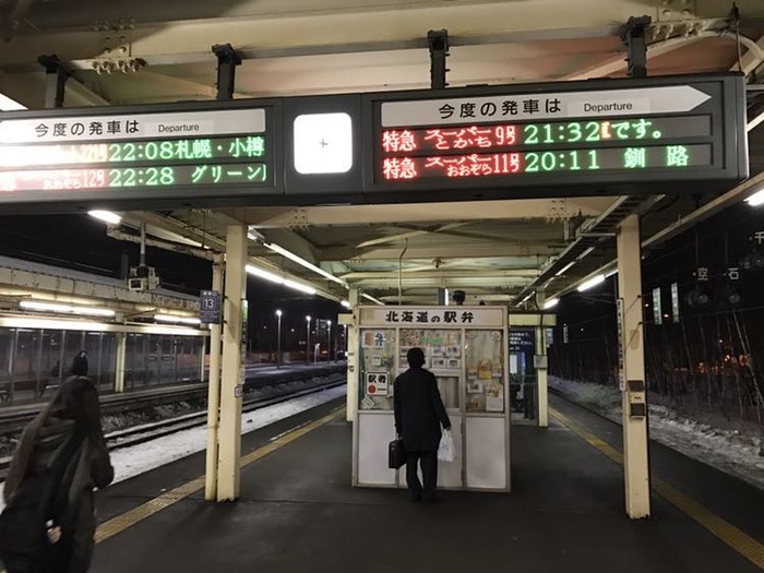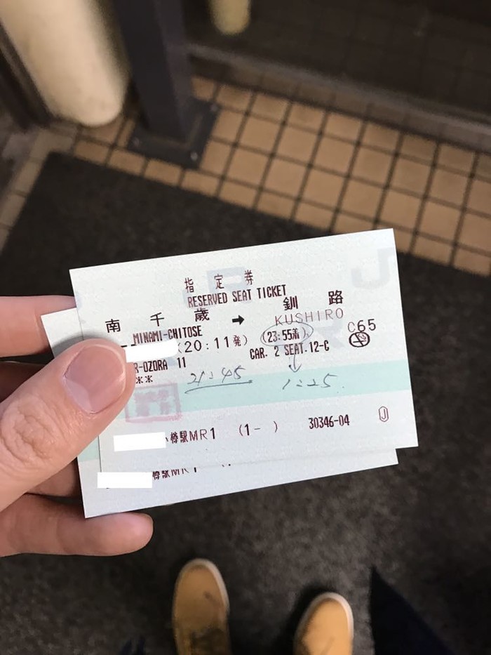 我们要乘的是这两趟车。结果后来到了南千岁,得知开往釧路的车seriously delayed or canceled(严重延误甚至取消),desk clerk多了我们两张票去带广,说车如果过了很久还没到可以用这个票去带广(离釧路还是有段距离了);当时很懵逼得给釧路的酒店打电话问如果今天取消订单要不要交罚金对方说no charge,于是就取消了订单定了带广的酒店;1h过后还是不信邪就再到楼上问了问,对方说那班车没有取消了,大约21:45到这里第二天1:25到釧路,于是我们就把到带广的票退了然后赶紧打电话给釧路的酒店说我们还是要来请求恢复订单(后来发现直接在booking上操作就得了,当时实在是很激动)。