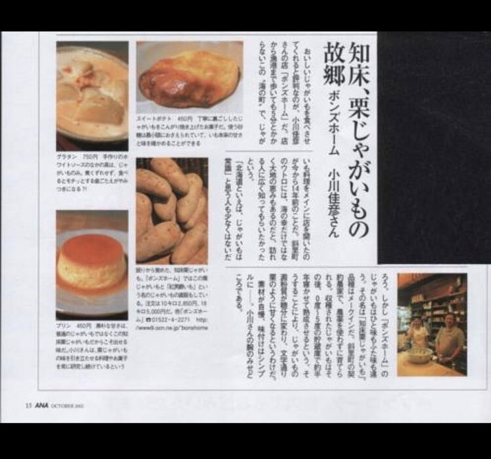 得知老板娘叫小川佳彦,Yahoo了一下发现她还是斜里町的6名综合计画策定委员之一;接着找到了Bon's Home的官网,看到食物介绍: