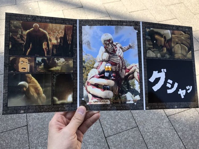 这张照片1800日元(真是贵,当时以为站上去照了就必须付钱,后来发现好多人照了之后看了眼照片就走人了,难怪我说买的时候身着调查兵团披风的小哥两眼直冒金光,眉毛都凑到刘海了)