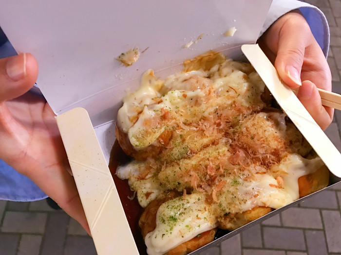 ↑ 章鱼小丸子,跟小哥说多要沙拉酱,结果真的给了好多,哈哈。然而还是软趴趴,果然还是喜欢国内的。。。
