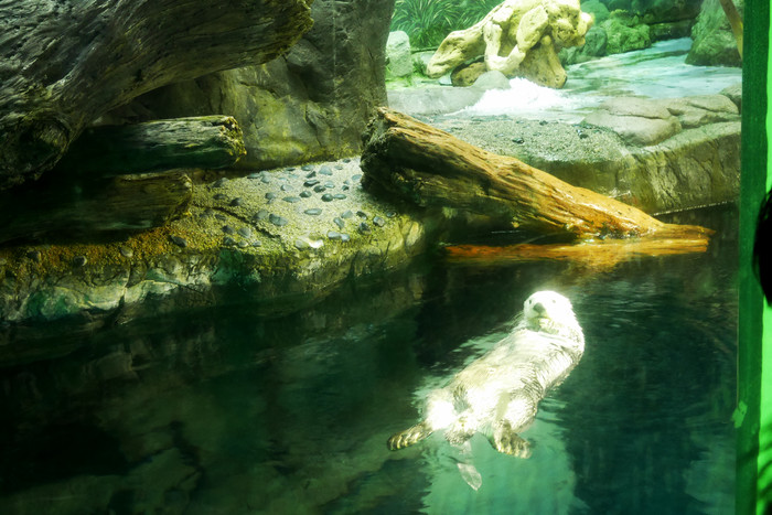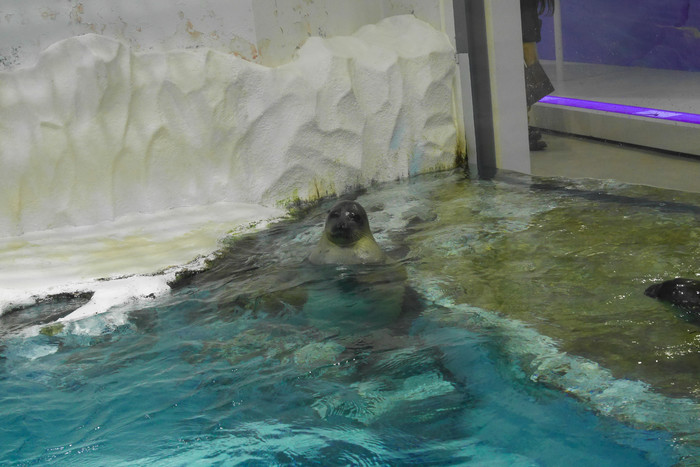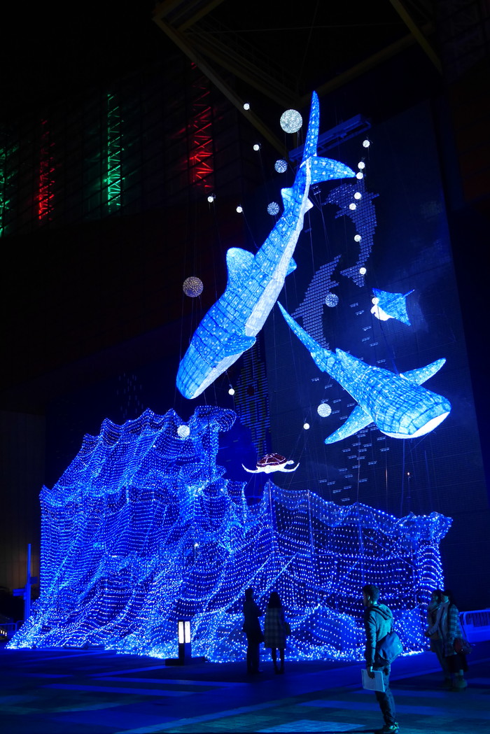 吃完东西又回去海游馆。其实白天已经逛完了,但是想着晚上可能有什么特别节目,就又去逛了下。结果证明我们想多了,晚上啥都没有,而且环境比较暗,不太适合看动物。倒是挺适合情侣们的。所以,如果是想看动物,还是建议白天去~