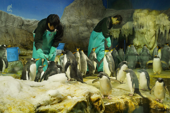 ↑企鹅每天有几个固定时间喂食,也很有趣