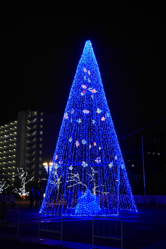 ↑晚上海游馆外面都亮起了灯,快圣诞节的缘故,装饰的很美