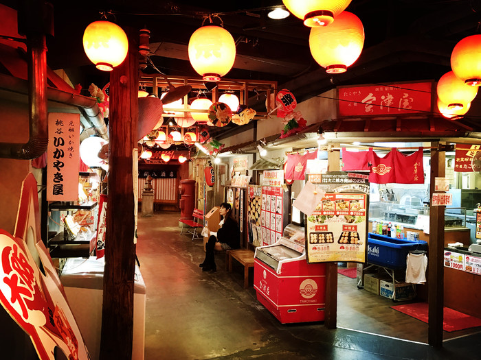 出了海游馆,左手边的矮建筑里面是美食街,各种小吃。